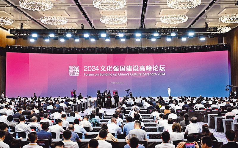 2024年5月23日,2024文化强国建设高峰论坛在广东深圳举办。本届论坛主题为“中国式现代化与新的文化使命”,由中央宣传部主办。中央宣传文化单位、各省区市和新疆生产建设兵团党委宣传部、部分文化企事业单位有关负责同志和有关智库专家学者等参加论坛。 新华社记者 邓华/摄 三、坚持“两个结合”,在创造性转化和创新性发展中赓续中华文脉 中华文化素有“阐旧邦以辅新命”的传统,只有走向历史的深处,才能看到更远的未来。党的十八大以来,习近平总书记在始终强调把马克思主义基本原理同中国具体实际相结合的基础上,深刻把握马克思主义理论创新和社会主义文化发展的内在规律,鲜明提出“把马克思主义基本原理同中华优秀传统文化相结合”的重大命题。“两个结合”特别是“第二个结合”,阐明了“何以中国”的文化密码,揭示了开辟和发展中国特色社会主义的必由之路,也揭示了推动理论创新和文化繁荣的必由之路,标志着党的理论创造性、文化主体性、精神独立性实现了新的升华。新时代新征程,必须坚持“两个结合”,不断开辟马克思主义中国化时代化新境界,不断推动中华优秀传统文化创造性转化、创新性发展,创造属于我们这个时代的新文化。 呵护好、弘扬好、发展好中华文明瑰宝,让千年文脉在当代中国生机勃发、气象更新,是坚持“两个结合”、推进文化强国建设的战略之举。要始终坚守马克思主义魂脉和中华优秀传统文化根脉,以马克思主义为指导对中华五千多年文明宝库进行全面挖掘,将中华民族的伟大精神和丰富智慧更深层次地注入马克思主义,有效把马克思主义思想精髓同中华优秀传统文化精华贯通起来,聚变为新的理论优势。坚持古为今用、推陈出新,按照时代特点和要求赋予中华优秀传统文化新的时代内涵和现代表达形式,努力用中华民族创造的一切精神财富来以文化人、以文育人。秉持敬畏历史、热爱文化之心,正确处理文化遗产保护和经济社会发展的关系,健全文化遗产保护传承体制机制,推动文化遗产系统性保护和统一监管,将祖先留给我们的历史文化遗产完整传承下去。 四、注重以立为本,持续发展壮大主流价值、主流舆论、主流文化 中国式现代化是物质文明和精神文明相协调的现代化,文化强国建设在全面建设社会主义现代化国家中具有重要战略地位。习近平总书记指出,无论哪一个国家、哪一个民族,如果不珍惜自己的思想文化,丢掉了思想文化这个灵魂,这个国家、这个民族是立不起来的。我们的主流思想文化是社会主义的思想文化,植根于深厚的历史传统和社会现实,所倡导的理念具有科学性先进性,所昭示的前进方向契合中国人民的美好愿景。建设文化强国,必须发展壮大主流价值、主流舆论、主流文化,有效润泽人心、凝聚共识,坚定信心、滋养社会,为强国建设、民族复兴提供坚强思想保证、强大精神力量、有利文化条件。 随着经济科技持续发展和社会格局深刻调整,社会思想观念和价值取向日趋活跃,更加需要坚持以立为本,进一步发挥主流价值、主流舆论、主流文化的引领作用。要大力弘扬主流价值,着眼立精神支柱、树价值标杆、育时代新人,培育和践行社会主义核心价值观,推动理想信念教育常态化制度化,广泛开展党史、新中国史、改革开放史、社会主义发展史宣传教育,加强和改进思想政治工作,推进群众性精神文明创建和公民道德建设,塑造向上向善的时代风尚。做大做强主流舆论,坚持团结稳定鼓劲、正面宣传为主,精准有效开展主题宣传、形势政策宣传、成就宣传、典型宣传,强化经济宣传和预期引导,推进新闻宣传和网络舆论一体化管理,做好主流媒体系统性变革这篇大文章,推动主力军全面挺进主战场,塑造主流舆论新格局,使正能量更加充沛、主旋律更加高昂。加强主流文化建设,发展社会主义先进文化,弘扬革命文化,传承中华优秀传统文化,全面提高文化发展质量和效益,更好发挥文化养心志、育情操的作用,涵养国家文化元气。 五、站稳根本立场,始终坚持文化建设着眼于人、落脚于人 人民是历史的创造者,是时代的雕塑者。以人民为中心,是新时代坚持和发展中国特色社会主义的根本立场,也是贯穿新时代文化建设的价值旨归和鲜明主线。习近平总书记强调,文化强国之“强”最终要体现在人民的思想境界、精神状态、文化修养上。建设文化强国,必须坚持以人民为中心的工作导向,尊重人民主体地位,保障人民文化权益,不断满足人民群众多样化、多层次、多方面的精神文化需求,让人民精神世界更加充盈。