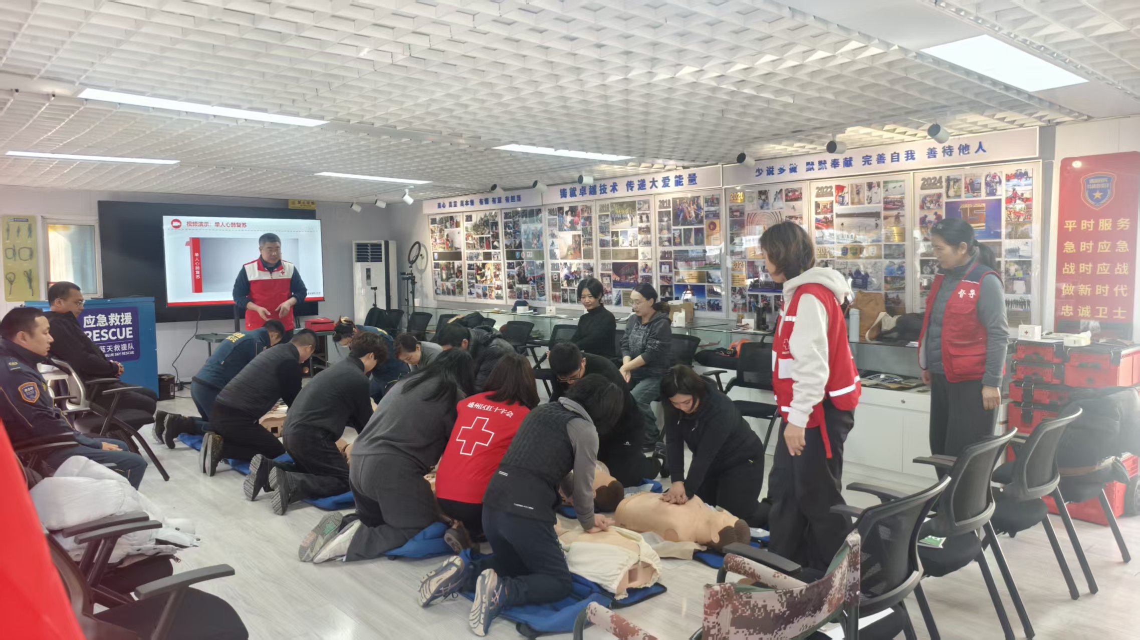 为进一步提升通州区应急救援志愿者的综合救援能力,助力营造我区安全稳定的生产、生活环境,1月11日,通州区红十字会为通州蓝天救援队举办了8学时应急救护技能培训班,22名新入队的应急救援志愿者参加培训并取得合格证书。