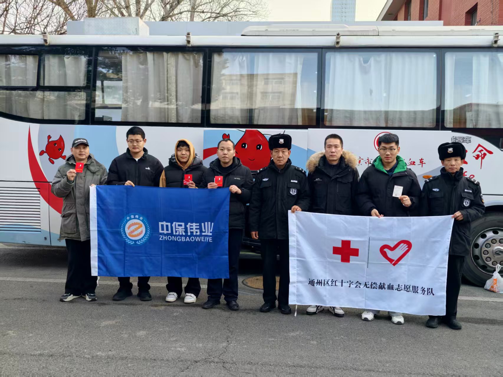为积极倡导无偿献血健康文明新风尚,弘扬无私奉献的志愿服务精神,由北京中保伟业保安服务有限公司员工组成的通州区红十字会无偿献血志愿服务队积极响应通州区中心血站号召,组织志愿者参加无偿献血活动,支持做好血液保障工作,有效保障区域医疗用血需求,以实际行动践行"人道、博爱、奉献"的红十字精神。